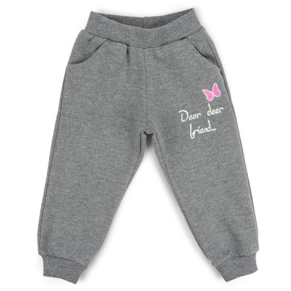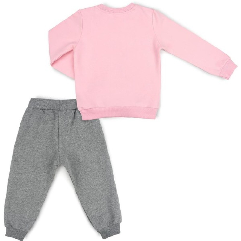 Милий комплект, що складається з світшота рожевого кольору і штанців приємного сірого меланжевого кольору дуже сподобається Вашій дитині!