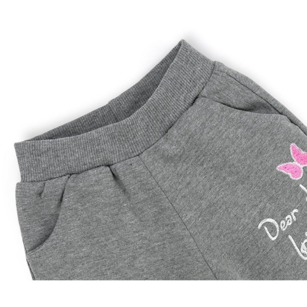 Зручні штанці з двома прорізними кишенями і милим вишитим метеликом на лівій холоші доповнюють цей ошатний комплект. Еластичний пояс, посилений вставленою всередину широкою гумкою, і манжети в «гумку» забезпечать оптимальну посадку по фігурі.