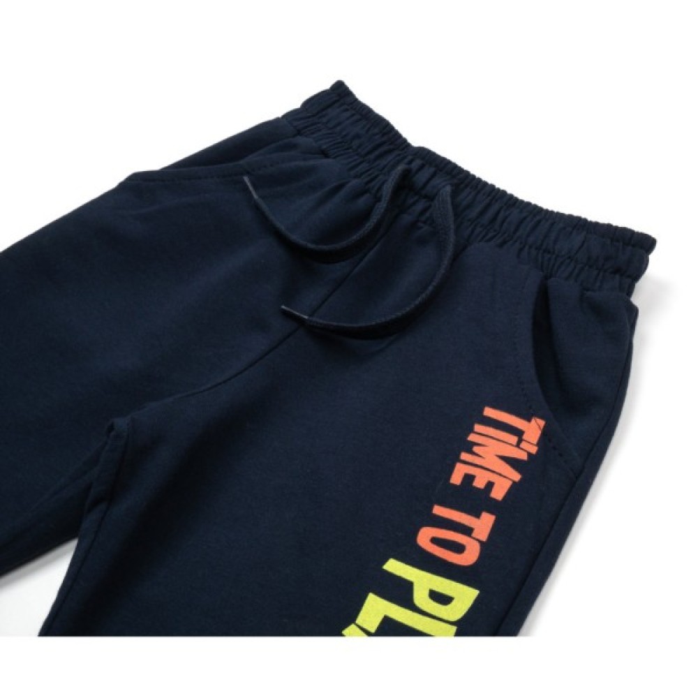 Пояс середньої ширини (3 см), на гумці, доповнений декоративним шнурком та на лівій частині шорт яскравим написом «TIME TO PLAY OUTSIDE».
