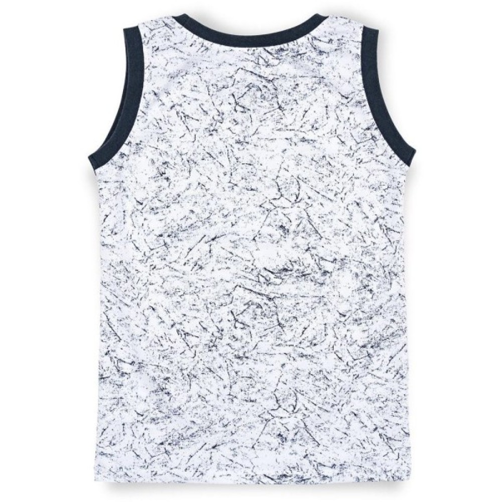Біло-синього кольору майка прямого силуету з прінтованим написом на грудях
