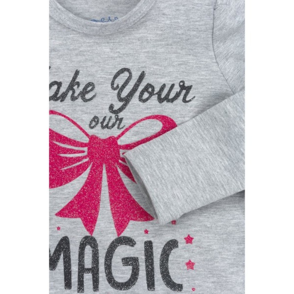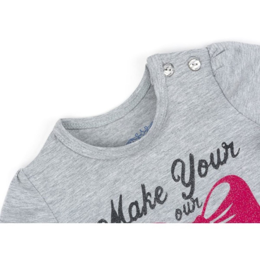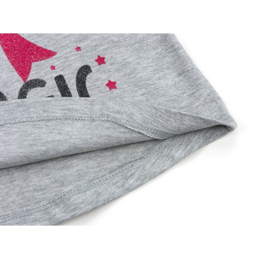 Симпатичний меланжевий костюм світло-сірого кольору для дівчинки - лонгслів і штани, з якісного турецького трикотажу на основі натуральної бавовни, з додаванням невеликого % еластану для підтримки форми.
