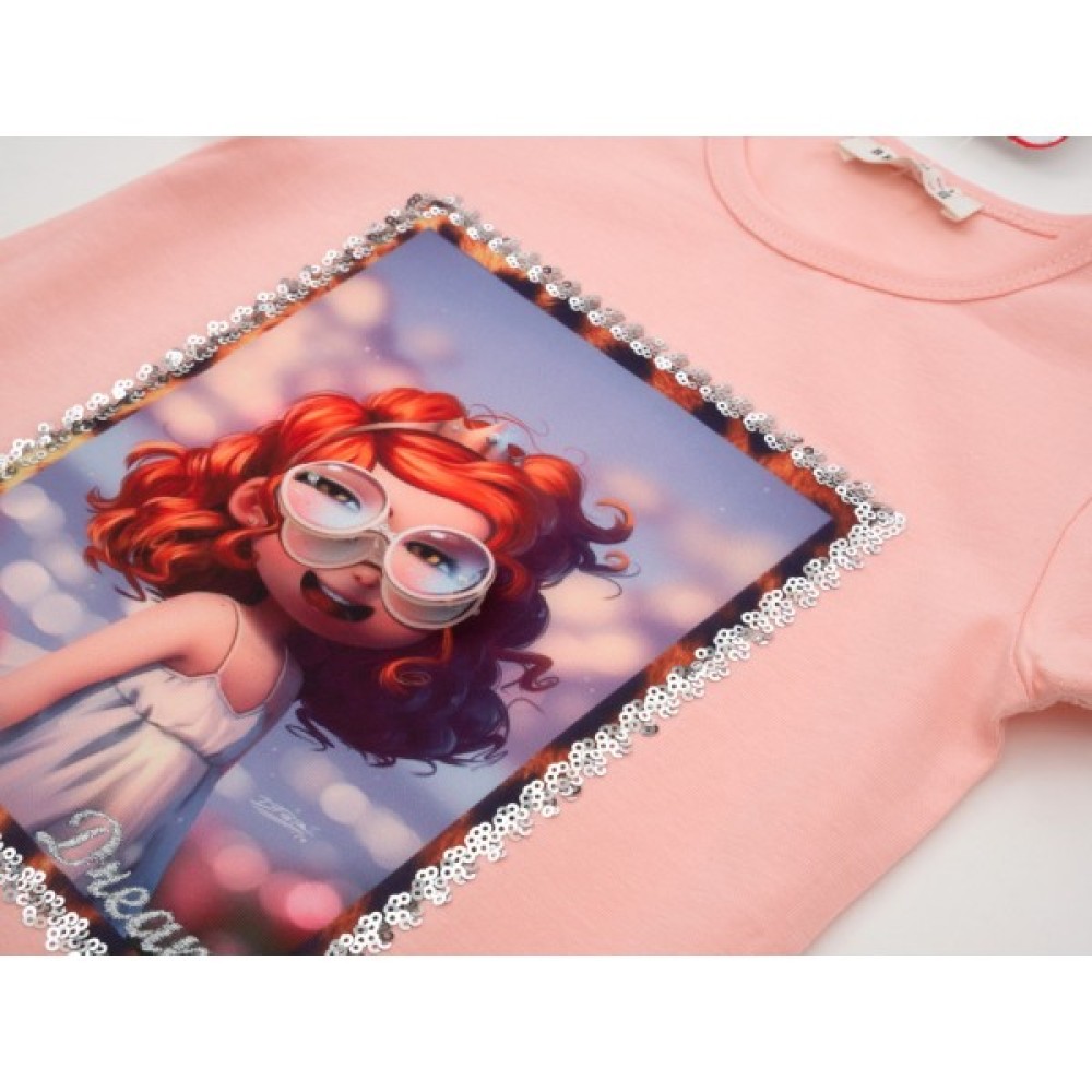 - Дуже класний, стильний модний комплект для дівчинки з тонкого бавовняного (95% бавовна) турецького трикотажу, гладенького, дуже якісного та приємного на дотик: персикова футболочка та темно-сині бриджики.