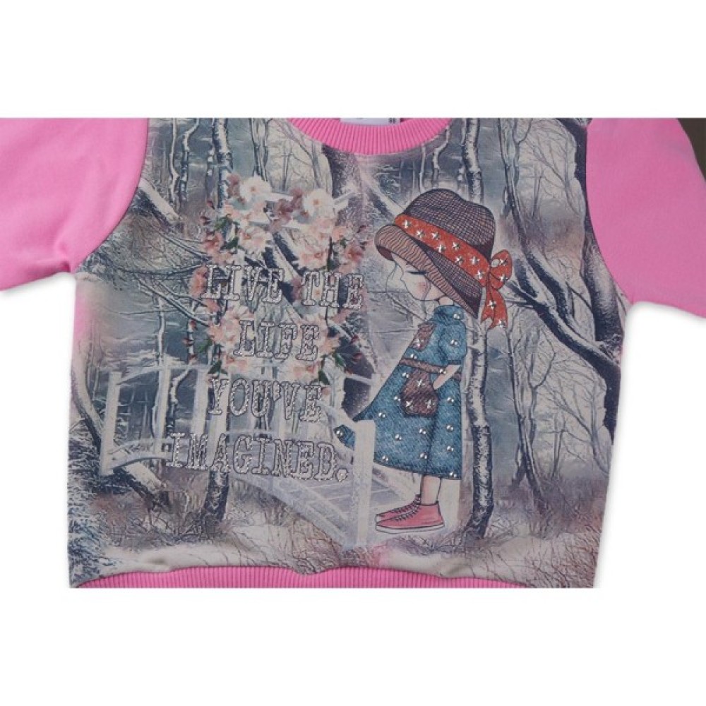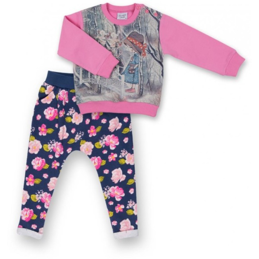 Набір дитячого одягу Breeze з дівчинкою і штанцями в квіточку (8075-80/G-pink)