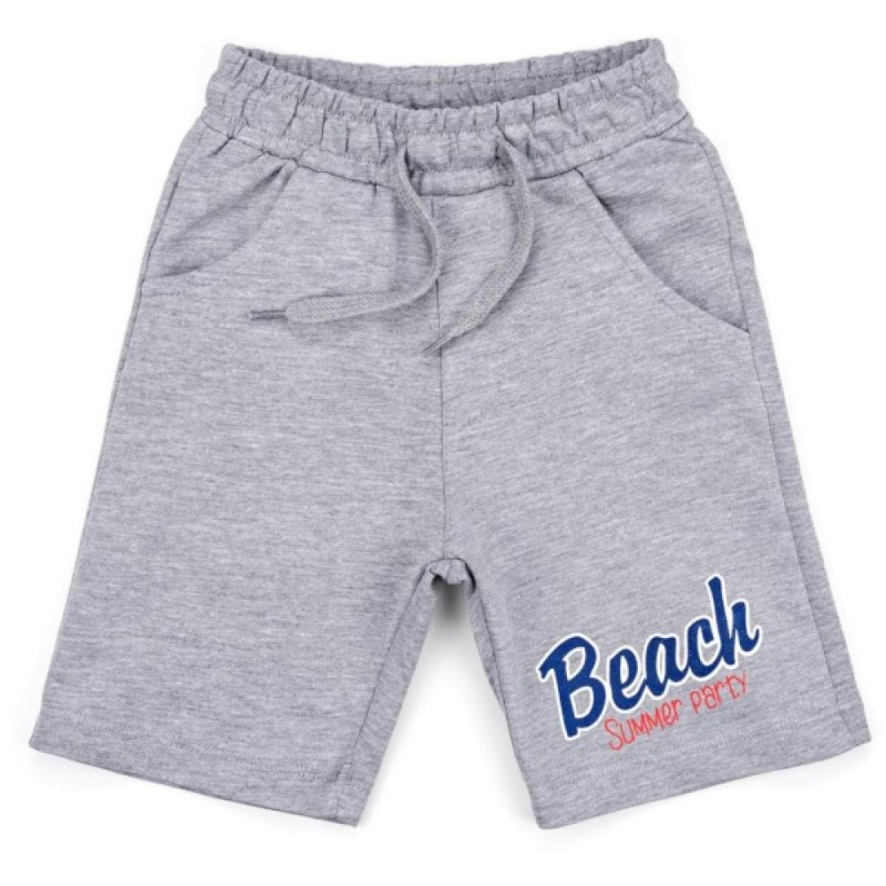 Шорти прямі, середньої довжини з еластичним поясом на гумці і двома прорізними кишенями. Прикрашені принтовим написом «Beach Summer party», аналогічним напису на футболці, що об'єднує ці речі в стильний комплект.
