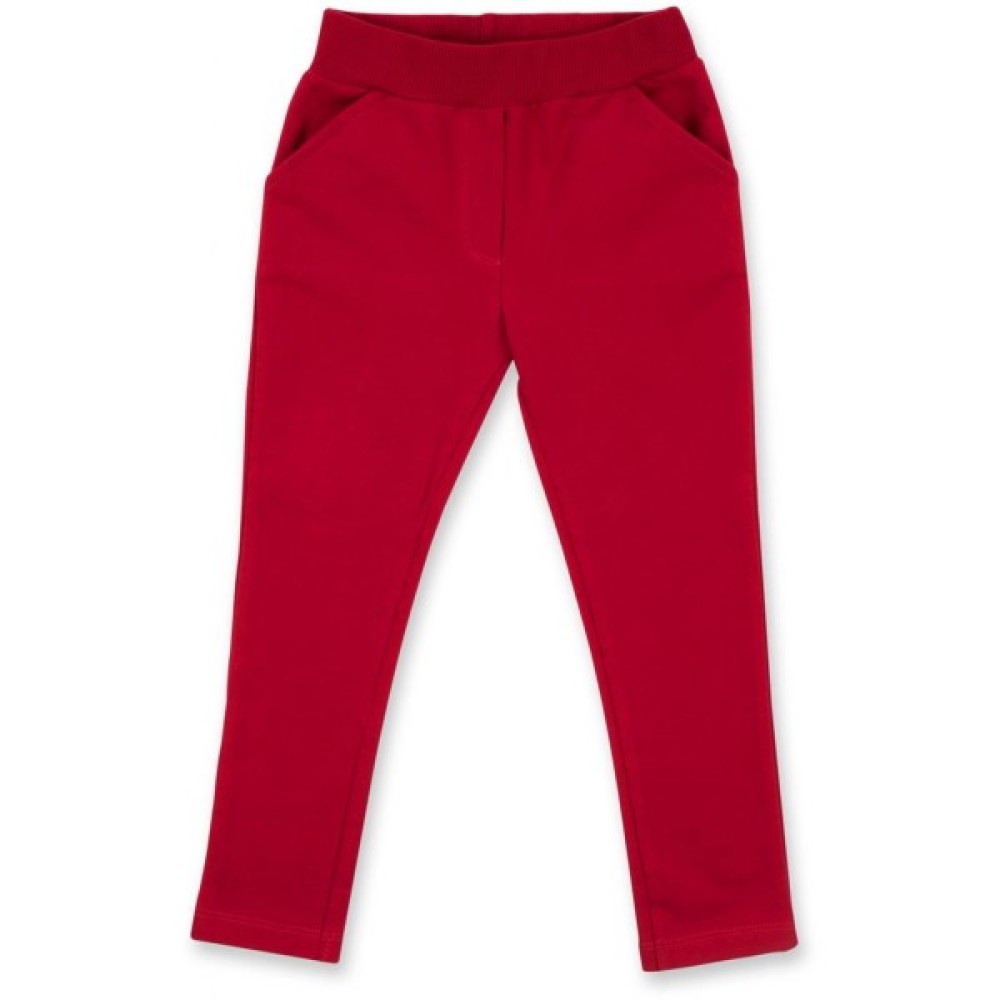 Зручні штани з щільного двохниткового трикотажу глибокого червоного кольору з двома прорізними кишенями і м'яким поясом. Еластичний пояс в «резинку» забезпечить оптимальну посадку по фігурі.