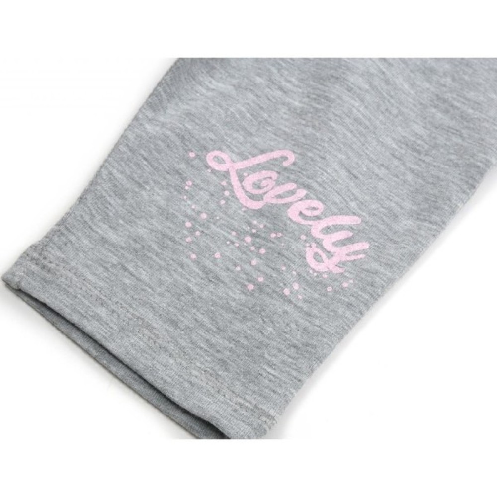 Дуже класний, модний комплект для дівчинки з тонкого бавовняного турецького трикотажу, дуже приємного на дотик: ніжно - рожева футболка і меланжеві світло-сірі бриджики.