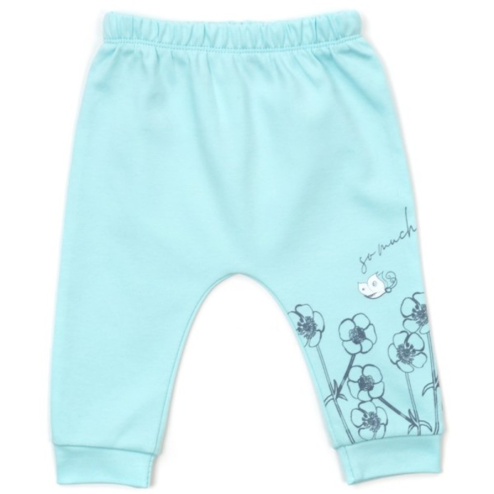 Штанці світлого кольору м'яти, з низькою посадкою під підгузок, на еластичному поясі з гумкою всередині.