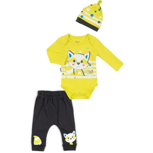 Чудовий трикотажний комплект 3в1 з єнотиком для хлопчика.