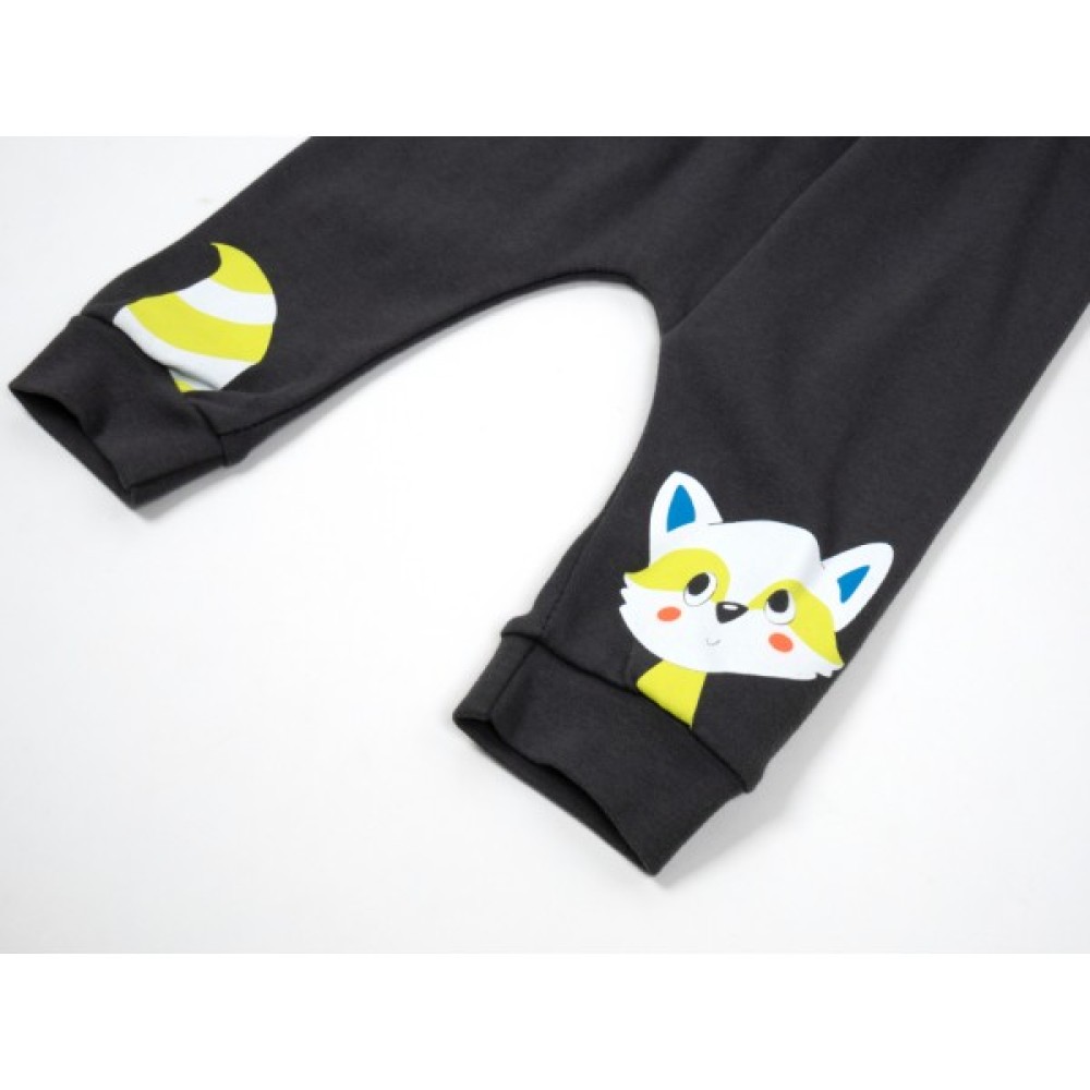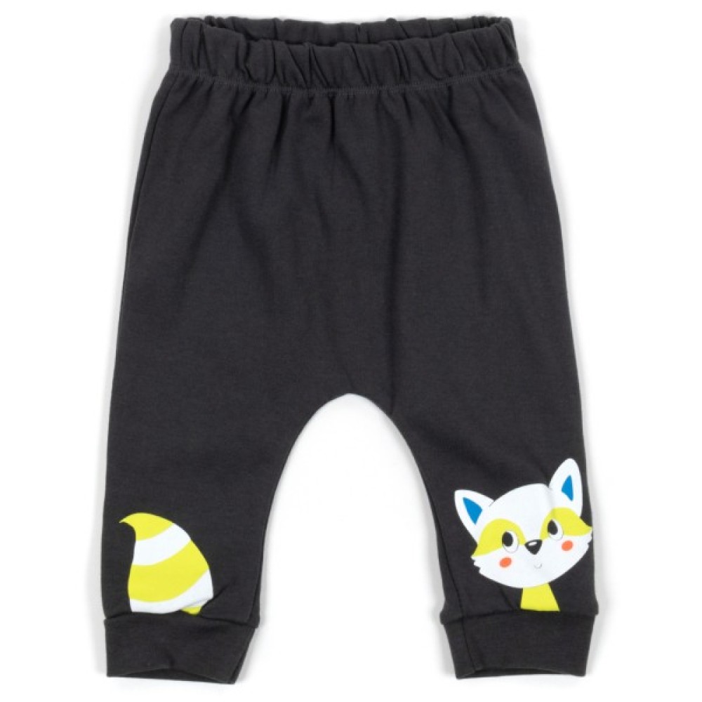• Штанці чудового кольору - графіт, на трикотажних манжетах, зі зручною посадкою під підгузок, без окремо вшитого поясу, на еластичній гумці всередині, також прикрашені по низу яскравими принтовими малюнками.