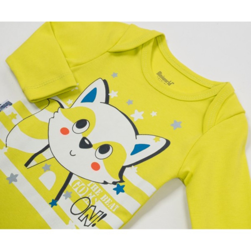 Дуже зручний, якісний, яскравий та симпатичний чудовий комплект від тм Miniworld, з продуманим до деталей кроєм та ефектними принтами, для вашого улюбленого малюка!