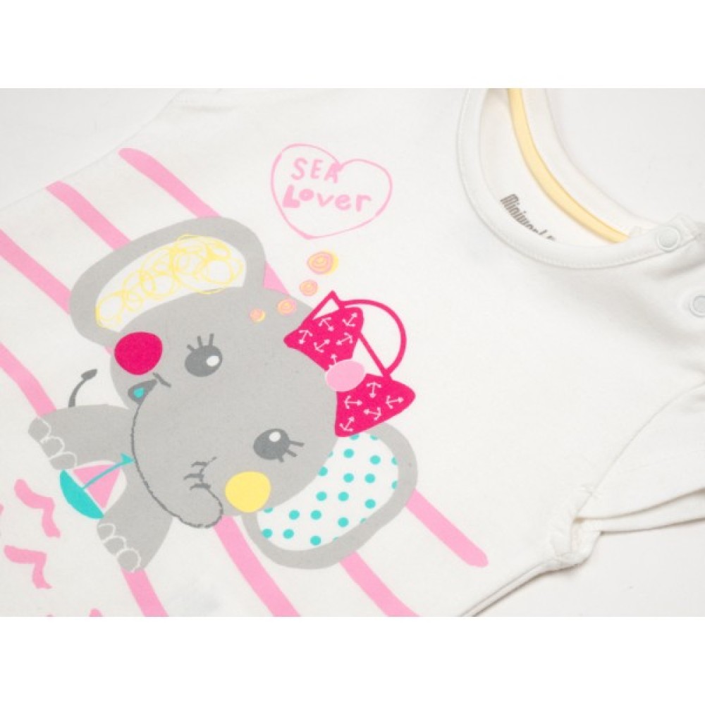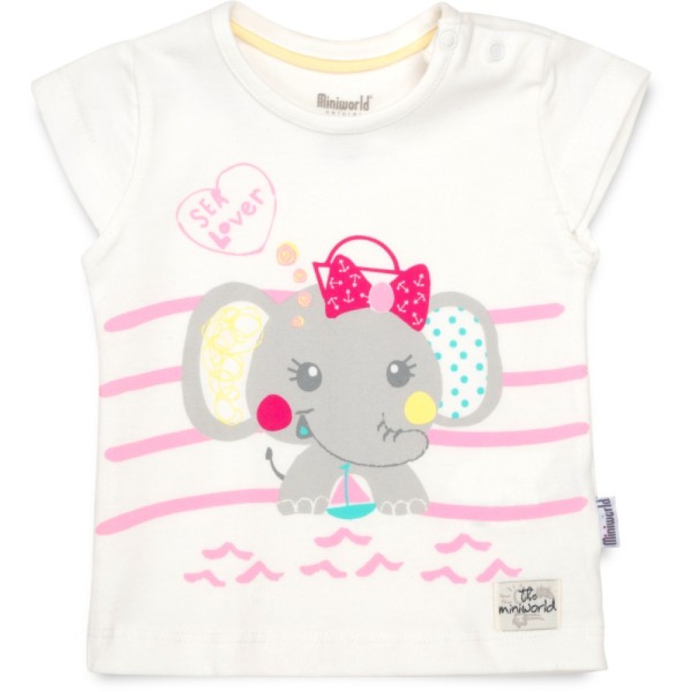 ● Футболочка кремового кольору прямого силуету, прикрашена на грудях симпатичним малюнком слоника.