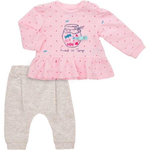 - Чудовий трикотажний комплект від тм Tongs з якісного бавовняного турецького трикотажу: рожева кофтинка з оборочкою і меланжеві світло-сірі штанці - 100% бавовна.