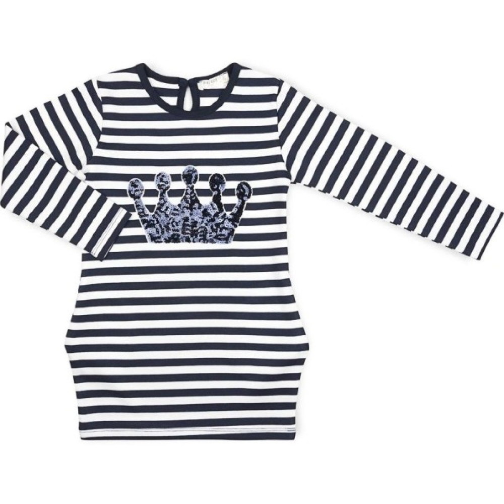 Ефектна смугаста сукня-туніка з короною із паєток.