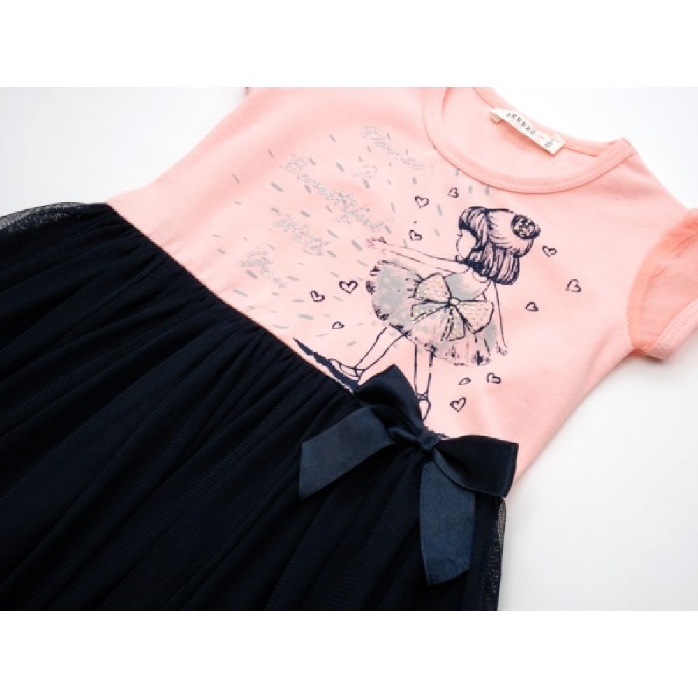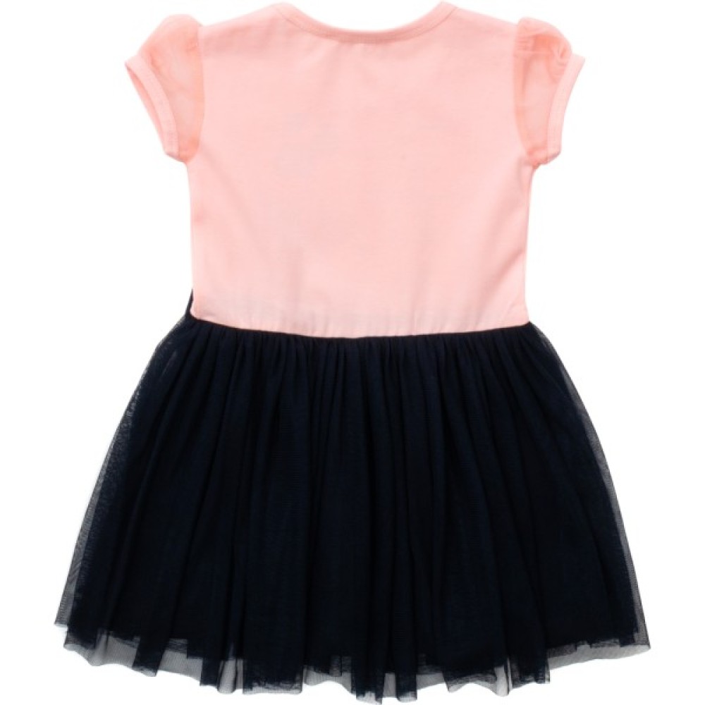• Симпатична, двокольорова сукня з короткими фатиновими рукавчиками-ліхтариками та легкою фатиновою спідничкою – відмінний, нарядно-повсякденний варіант для вашої улюбленої модниці.