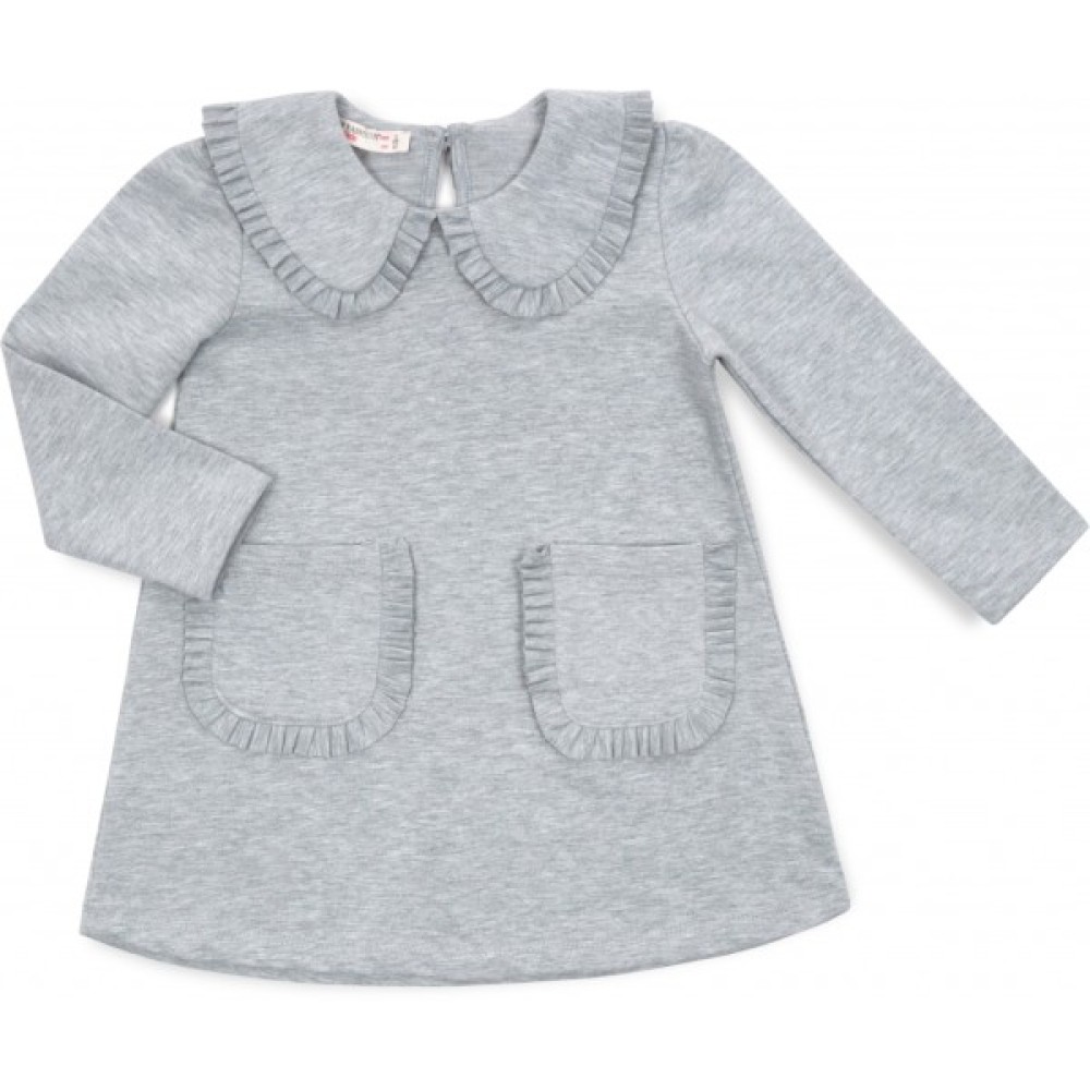 Затишне трикотажне плаття, сірого меланжового кольору, з довгим рукавом. Практичне та зручне, воно ідеально підходить для повсякденного носіння.