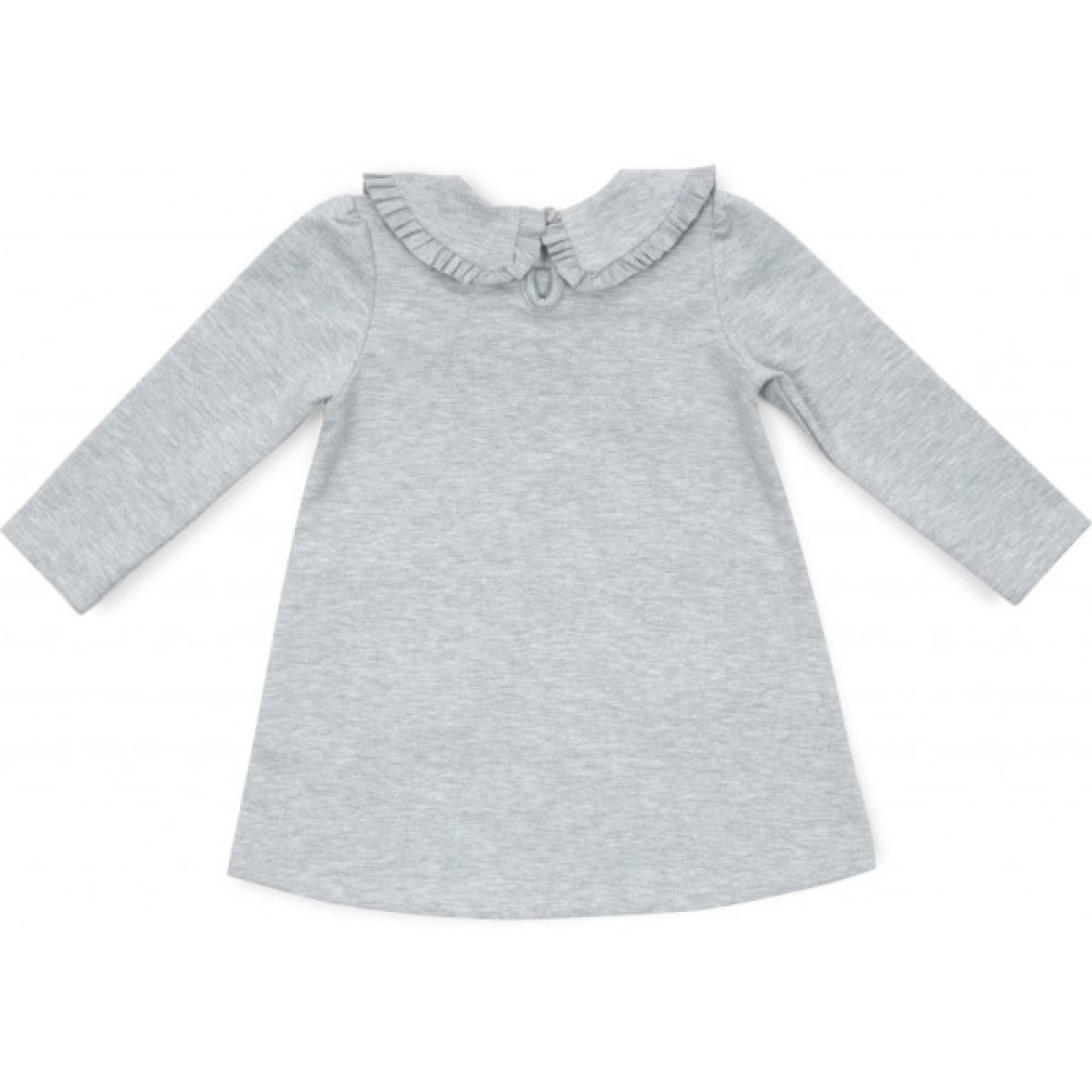 Затишне трикотажне плаття, сірого меланжового кольору, з довгим рукавом. Практичне та зручне, воно ідеально підходить для повсякденного носіння.