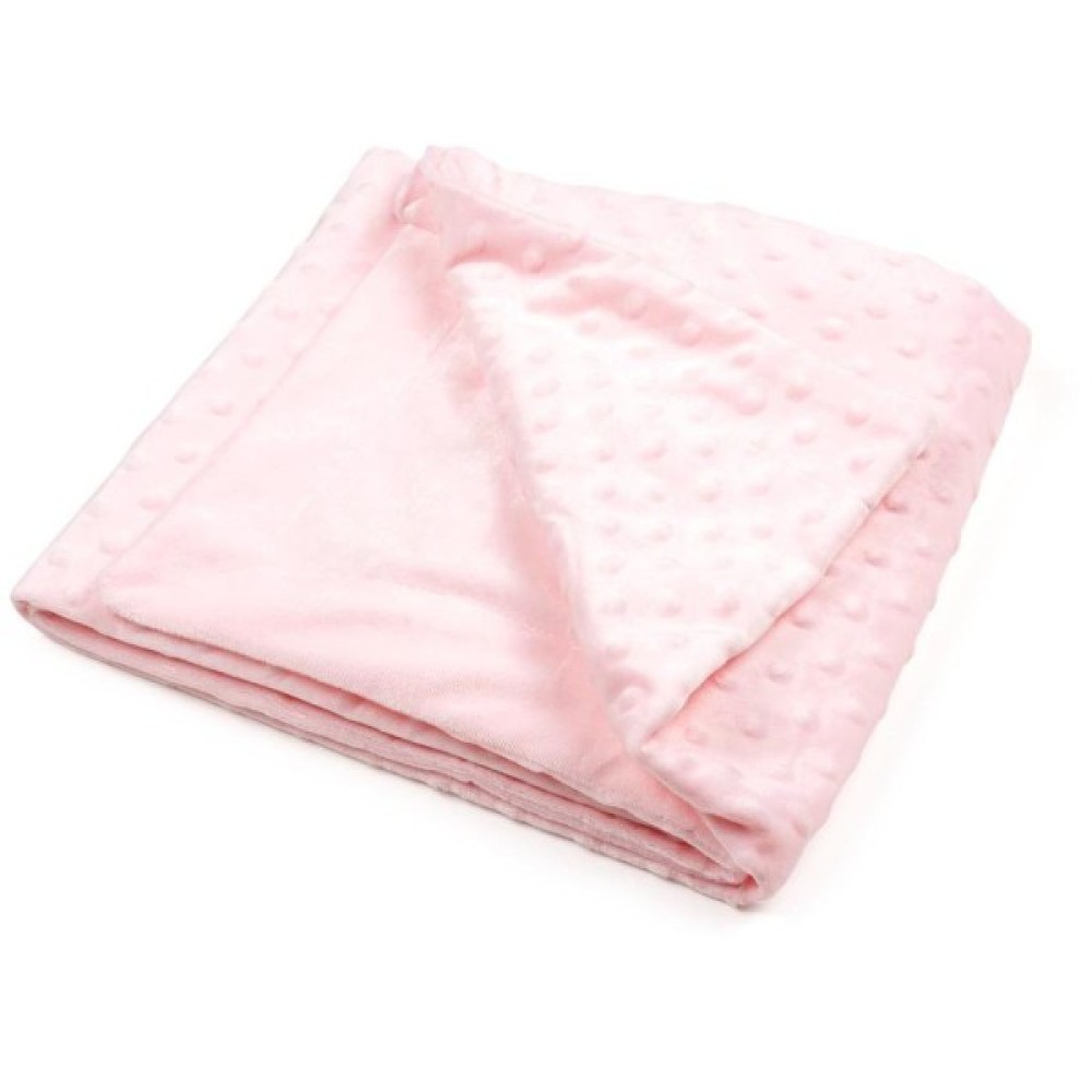 Легка, дуже м'яка і приємна на дотик, двостороння ковдрочка рожевого кольору. Одна сторона гладка - м'який і ніжний велюр з коротким ворсом на трикотажній основі, друга - з опуклими об'ємними кружечками (100% поліестер). Накривати можно будь - якою зі сторін, за Вашим бажанням. Велюр міцний, довговічний, не сідає, трохи тягнеться, ворс короткий - не викликає алергії, простий у догляді і на ньому не утворюються катишки.