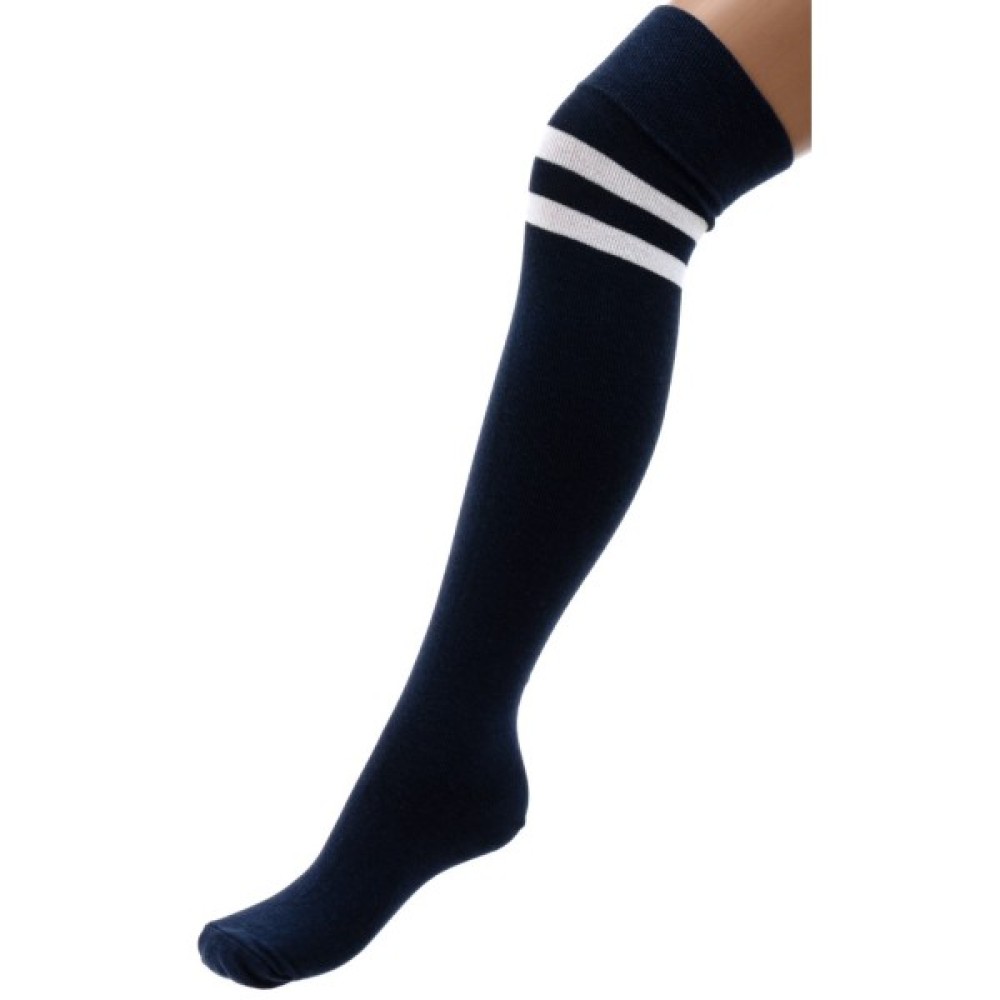 • Дуже класні, стильні та якісні, еластичні однотонні темно-сині гольфи з двома білими смужками.