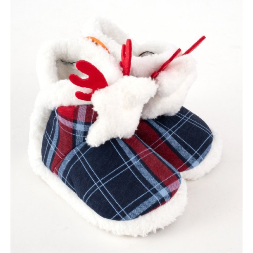 Домашні тепленькі капці-угі у новорічному стилі прикрашені об'ємною м'якою зіркою та симпатичними ріжками, не лише прикрасять ніжки вашого малюка, а й стануть приємним та затишним доповненням до дитячого подарунку на новорічні свята.