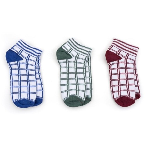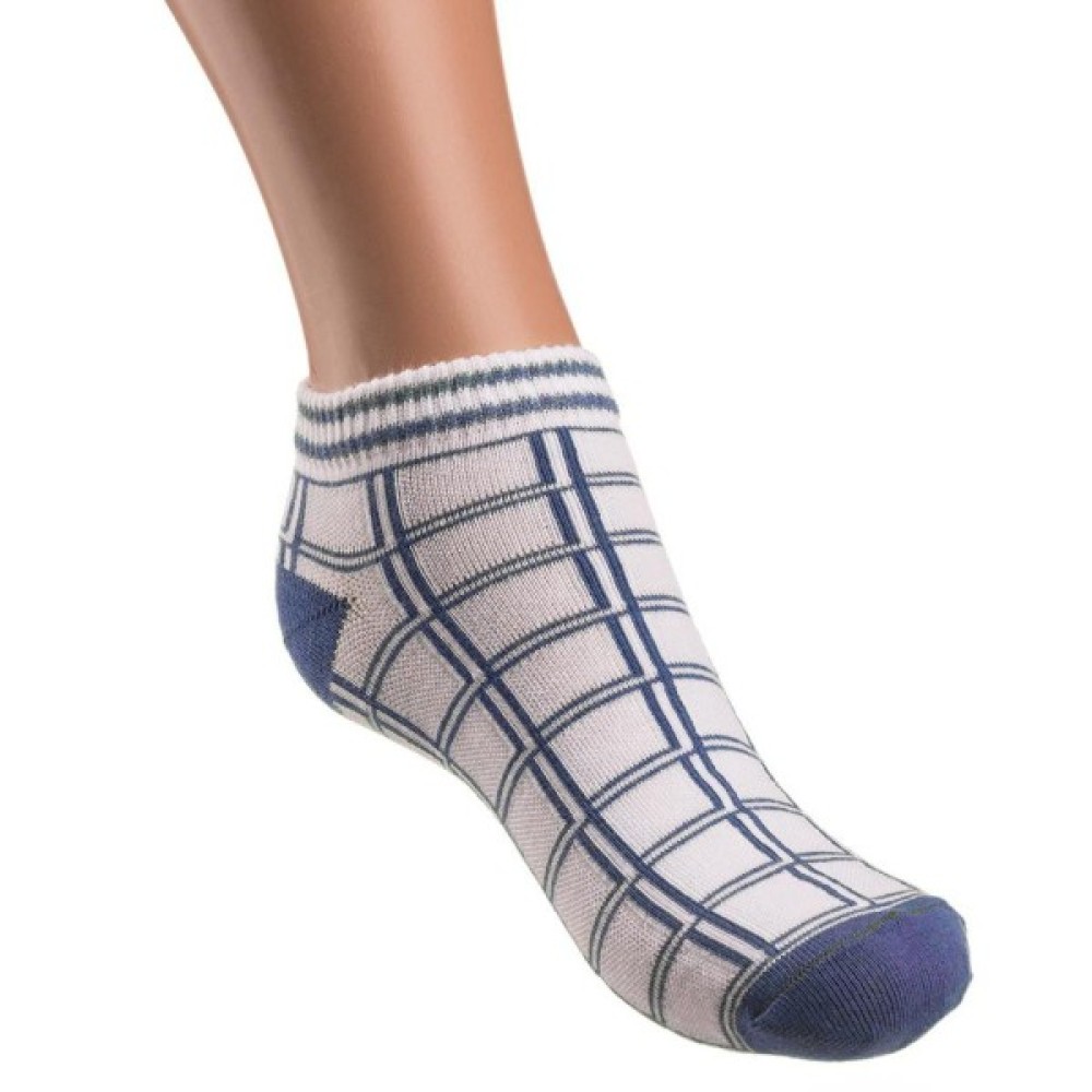 Комплект легких, тонких шкарпеток в крупну клітку. П'ята і передня частина носка однотонна. Шкарпетки еластичні, низькі, відмінного фабричного якості. Зроблені з високоякісної сировини на основі бавовни, дуже приємні на дотик. Гумка м'яка, подвійна, добре тягнеться і тримає форму. Завдяки своїм складовим, носочки добре тягнуться і відмінно носяться!
