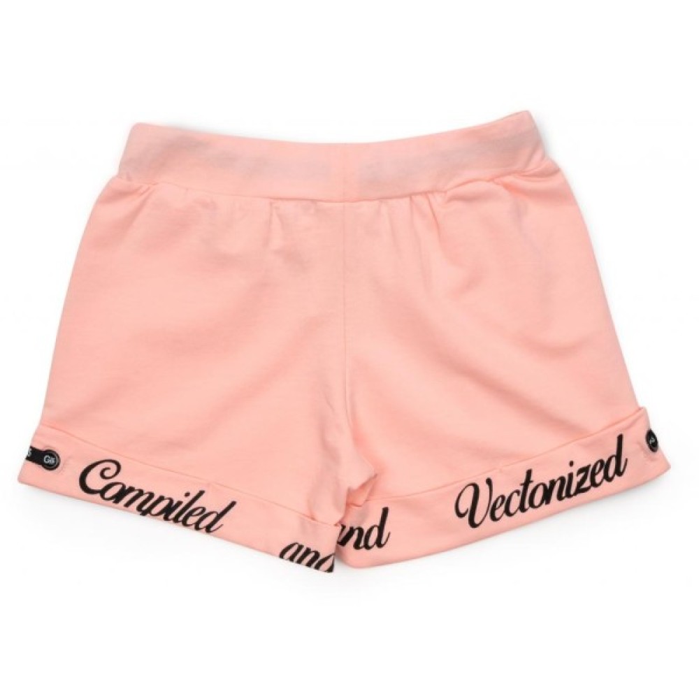 Шорти прямі, короткі, зі зручною посадкою та еластичним широким поясом на гумці. Пояс посилений додатково вставленою, широкою гумкою і функціонуючим шнурком. Спереду дві скошених прорізних кишені з чорними кантами.