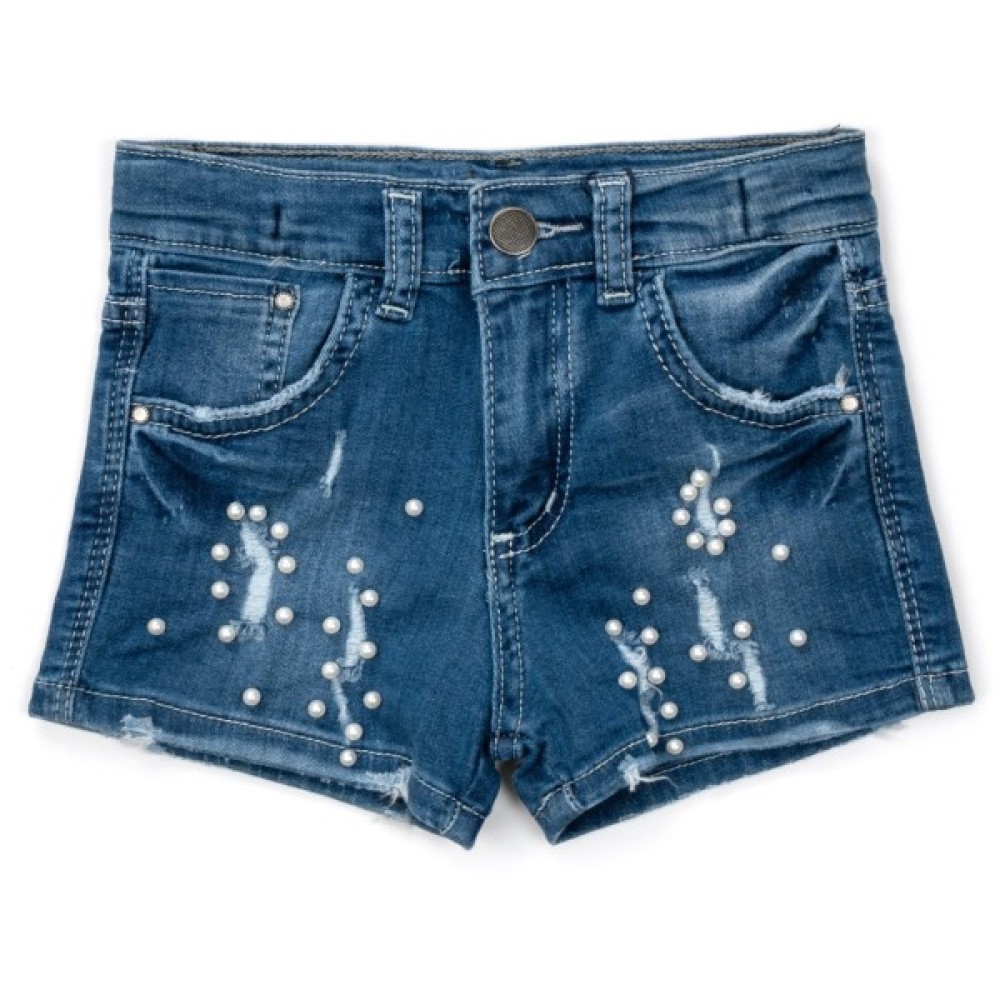 Модні джинсові шорти з перлинами для дівчинки.
