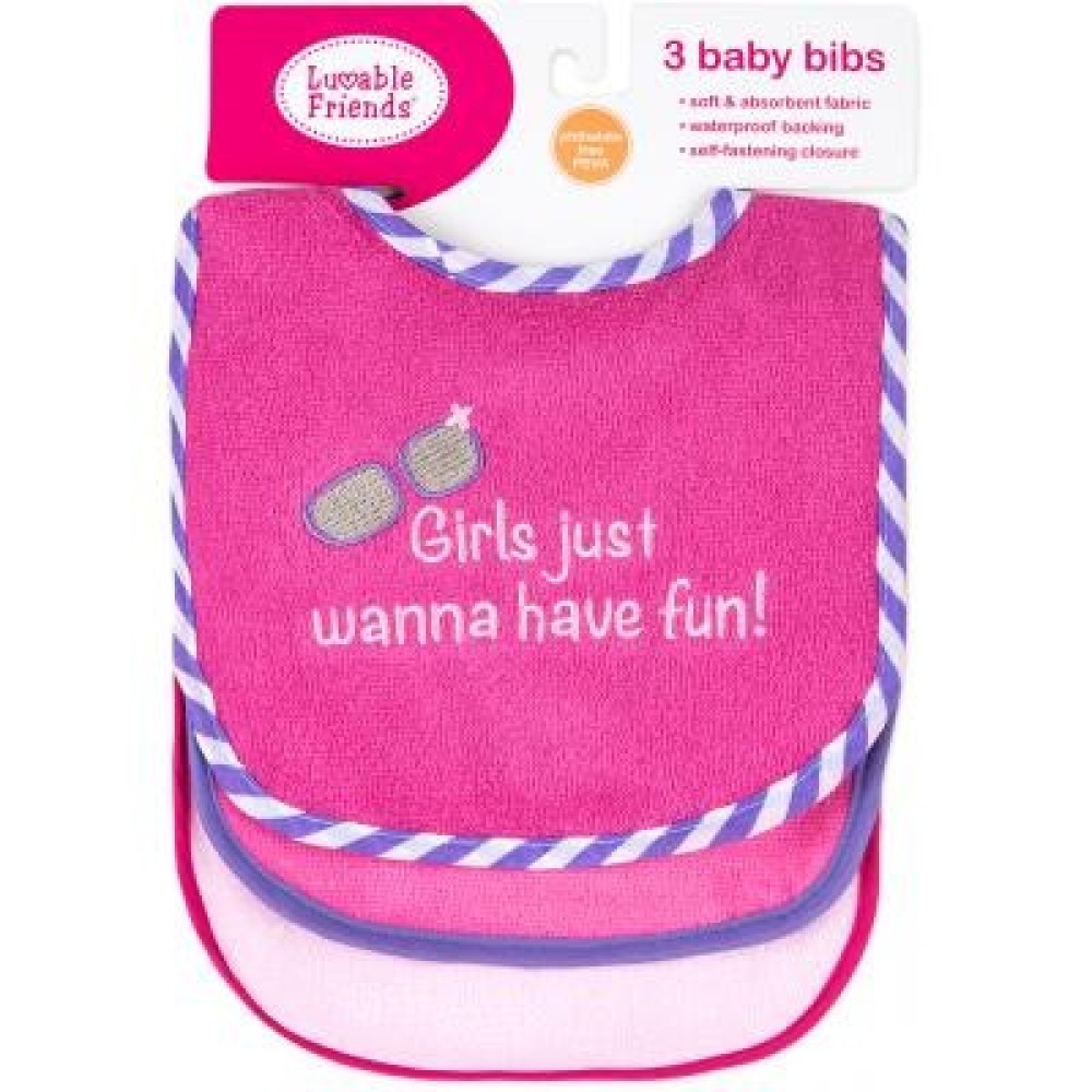 Слинявчик Luvable Friends 3 шт з написами, рожевий (2162 F) - комплект з трьох нагрудників на липучці. Всі нагрудники в комплекті мають свій оригінальний дизайн, декоровані принтами і аплікаціями. Виготовлені з м'якого трикотажного полотна, добре абсорбують вологу і мають внутрішнє водонепроникне покриття. Нагрудники - важливий атрибут під час годування!