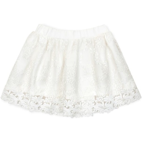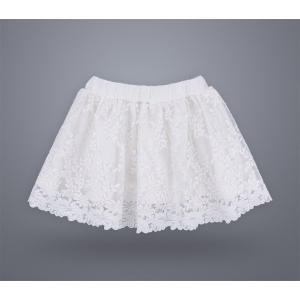 Красива, святкова 2-о шарова трикотажна спідниця молочно-білого кольору, з вишитим об'ємною гладдю верхнім шаром – дуже красива, модна річ та 100% хіт! Спідниця складається з основної трикотажної спідниці (з якісного, бавовняного турецького трикотажу) і верхнього повітряного ярусу тонкої, але міцної євро-сітки, вишитої по всій поверхні красивим візерунком (євро-сітка довше основної спідниці на 5 см). Трикотажний пояс, посилений додатковою резинкою, по ширині дорівнює поясу, що забезпечить зручність при носінні, комфорт та відмінний зовнішній вигляд.