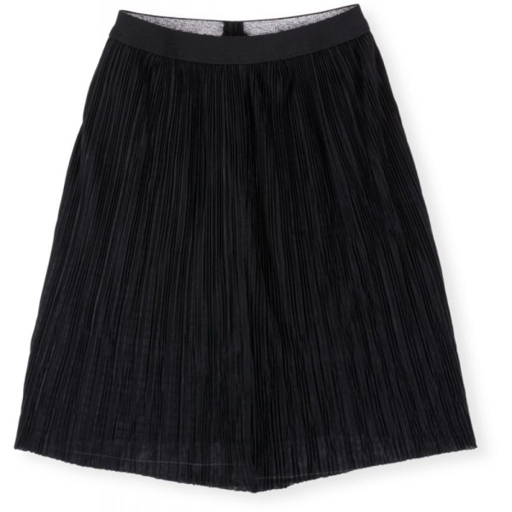 Тонка, легка плісирована спідничка (дрібна плісировка) чорного кольору на підкладці. Зшита з гладкої, стрейчевої плісированої тканини на еластичному поясі-резинці. Підкладка – з бавовняного трикотажу.Лінія низу відрізна, без підгину та обробки.