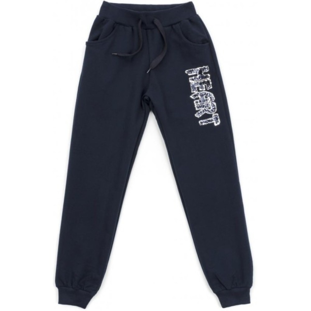 Зручні штани на манжетах також прикрашені на одній зі штанин аналогічним написом «HEART» з таких самих паєток. Еластичний широкий пояс з подвійною трикотажною «гумкою», посилений щільною вставленою «гумкою», забезпечить комфорт та оптимальну посадку по фігурі.