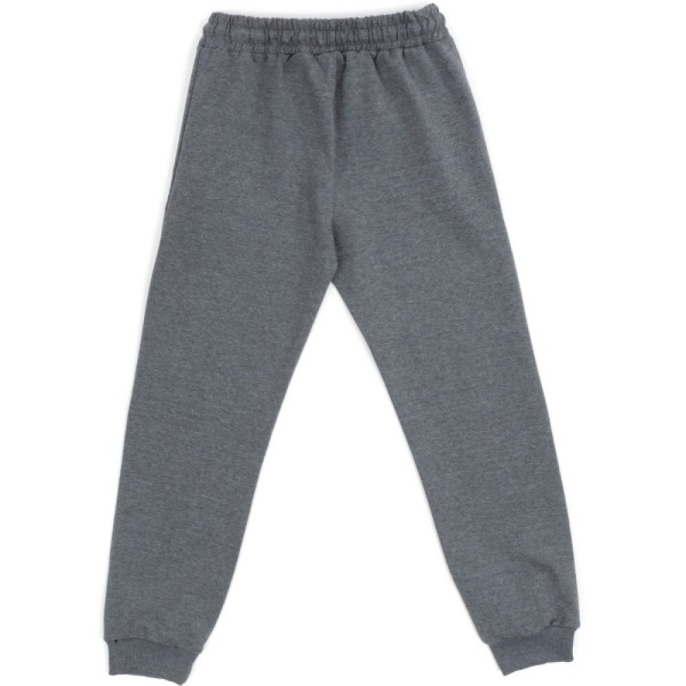 - Чудовий трикотажний спортивний костюм темно-сірого кольору з світловідбиваючими написами для хлопчика від тм Joi: кофта-олімпійка і штани на манжетах.