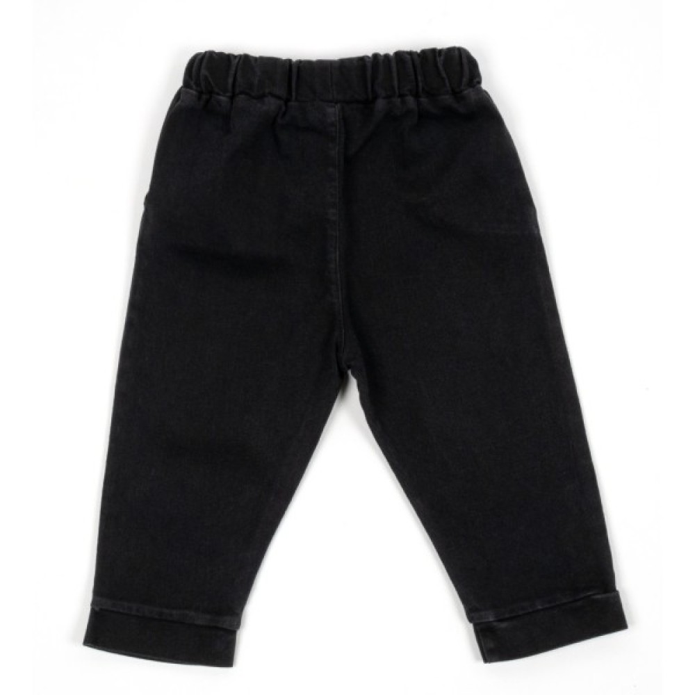 • Штанці зручні - тонкий, еластичний джинс-котон кольору графіт, під резиночку в поясі з декоративними манжетиками з основної тканини по низу, забезпечать дитині повну свободу рухів і оптимальну посадку по фігурі.