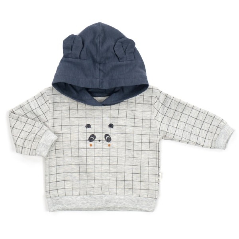 • Кофточка-худі прямого вільного силуету, з нез'ємним каптуром та довгими вшивними рукавами на манжетах. Кофта прикрашена спереду симпатичним принтовим малюнком ведмедика. Принт не боїться прасування. Каптур контрастного кольору, на трикотажній підкладці, з милими відлітними вшитими вушками.