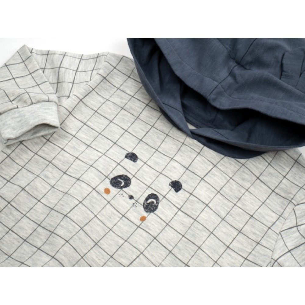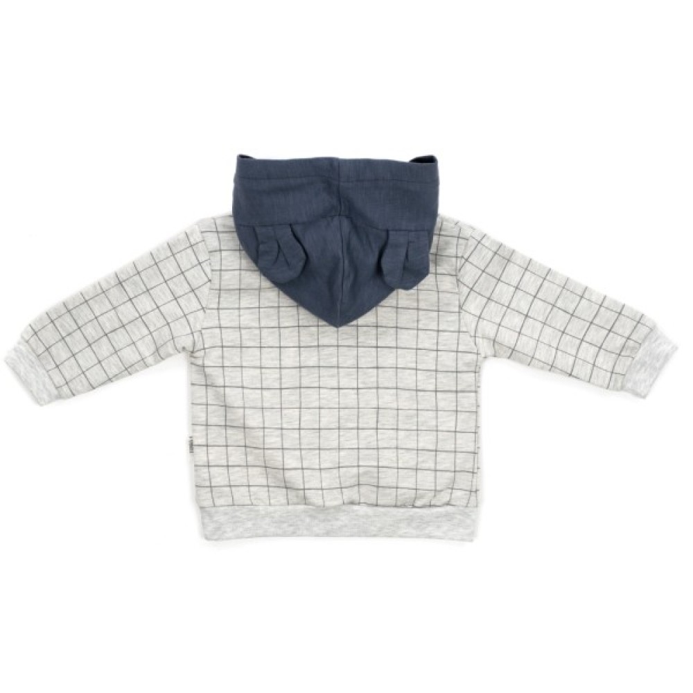 • Кофточка-худі прямого вільного силуету, з нез'ємним каптуром та довгими вшивними рукавами на манжетах. Кофта прикрашена спереду симпатичним принтовим малюнком ведмедика. Принт не боїться прасування. Каптур контрастного кольору, на трикотажній підкладці, з милими відлітними вшитими вушками.