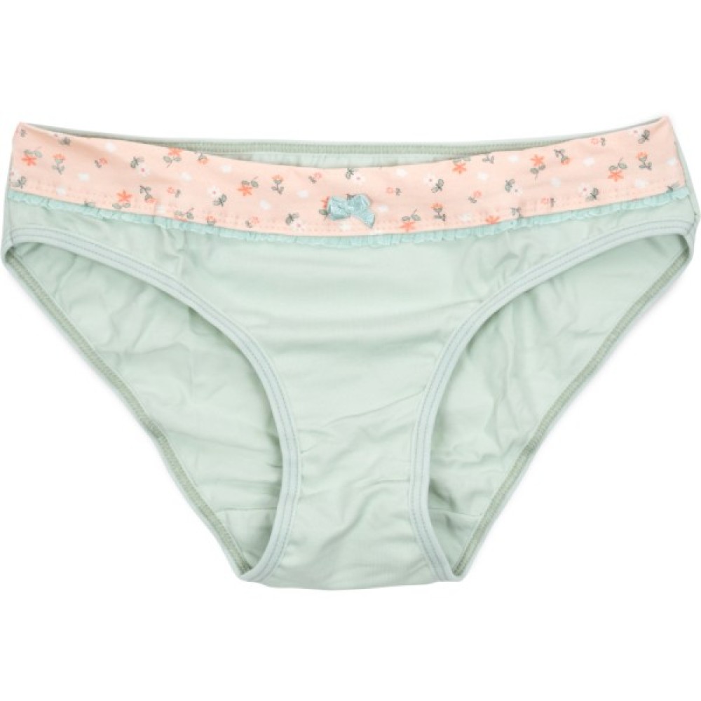 • У комплект входять 5 трикотажних бавовняних трусиків-сліпів, mix кольорів у приємних пастельних тонах. Трусики м'які, приємні на дотик, з ластовичкою, по краям еластична білизняна гумка в тон трусиків. Спереду широкий поясок з ніжним, ажурним білизняним рюшем-резинкою.
