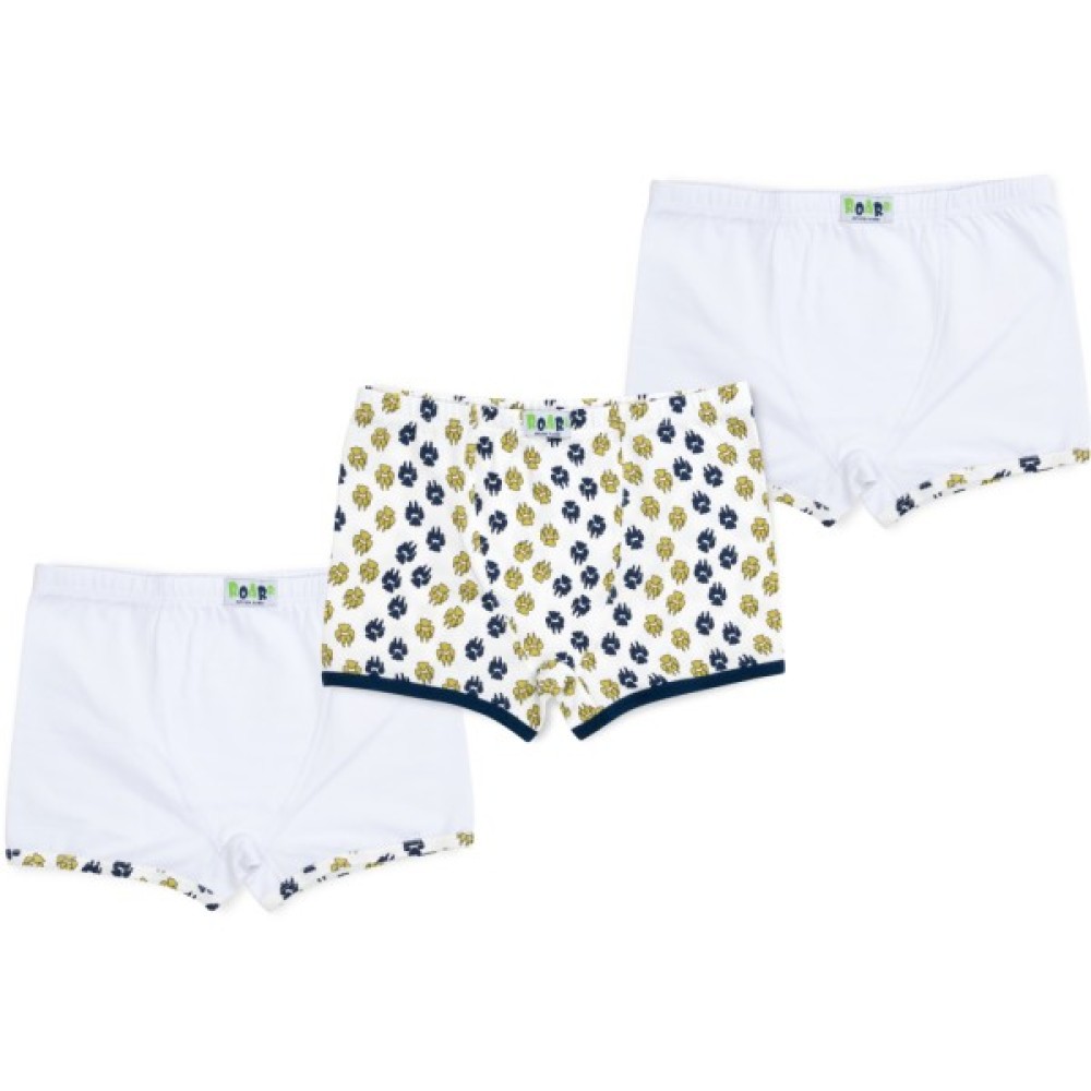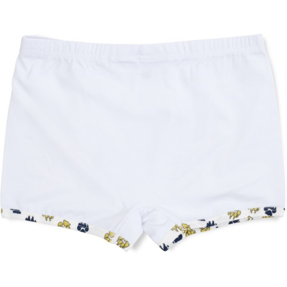 У комплект входять три пари бавовняних трусиків-шортиків - дві пари білого кольору та одні – у принтовий малюнок. .