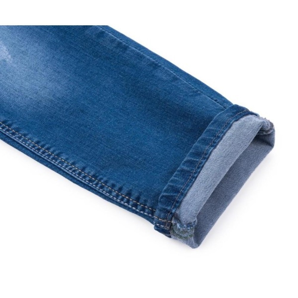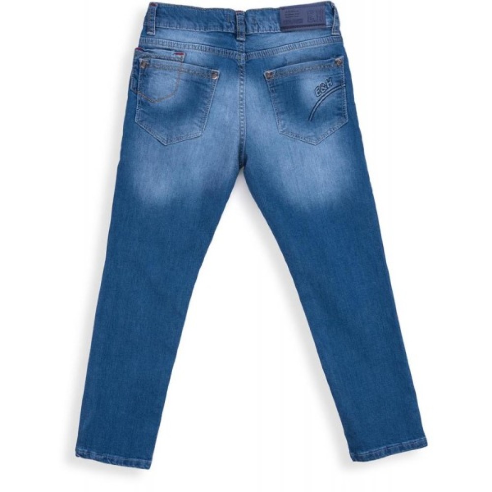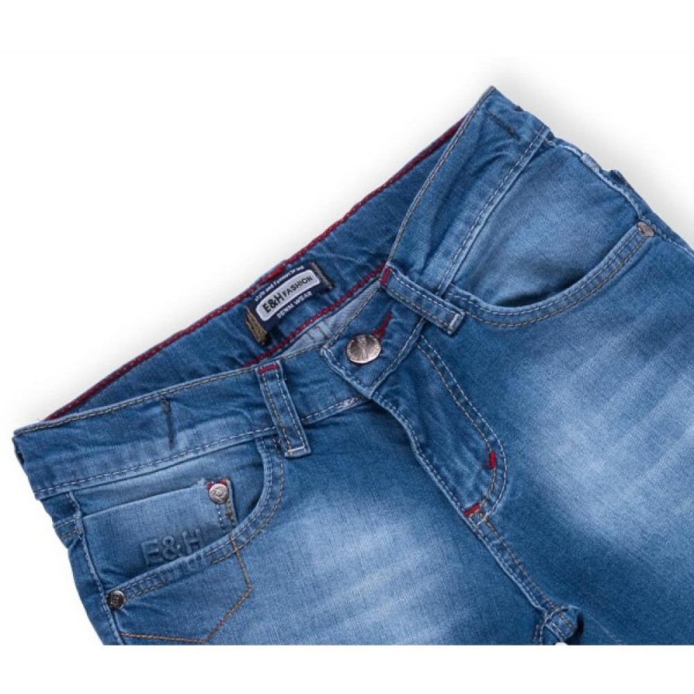 Стильні джинси зі зручною посадкою, модним «вареним» ефектом і ефектом «потертості». Брючини довгі, завужені до низу. Застібаються на гудзик і блискавку, на талії шлевкі для ременя. В пояс вставлена гумка для регулювання об'єму талії, яка забезпечить максимальну зручність та комфорт. Ззаду цікаві накладні кишені і декоративні відстрочки, спереду 2 основних прорізних кишені і в правій кишені - 1 маленький. Кишені додатково прикрашені фірмовим логотипом E&H.