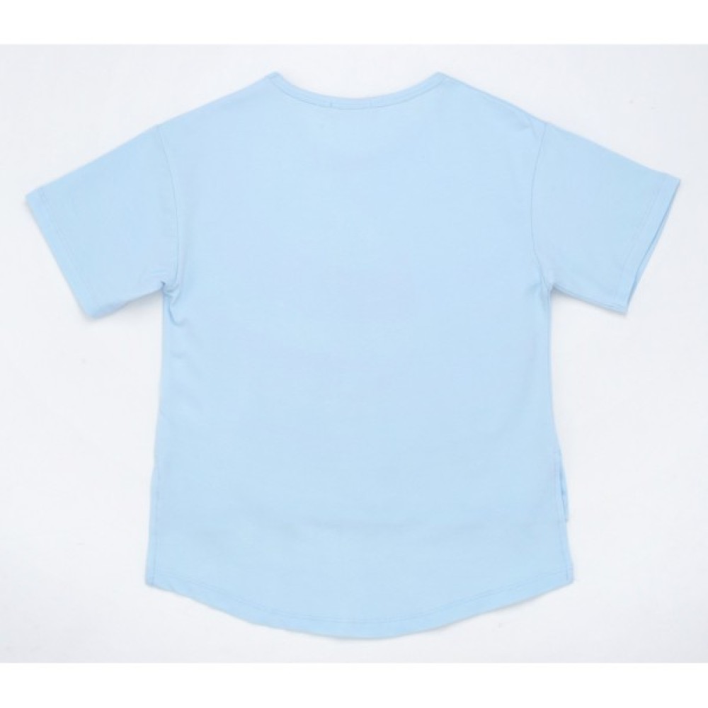 - Літня трикотажна ніжно-блакитна футболочка для дівчинки з якісного ніжного турецького трикотажу, прикрашена ефектним кольоровим симпатичним принтовим малюнком та прозорими голографічними паєтками.