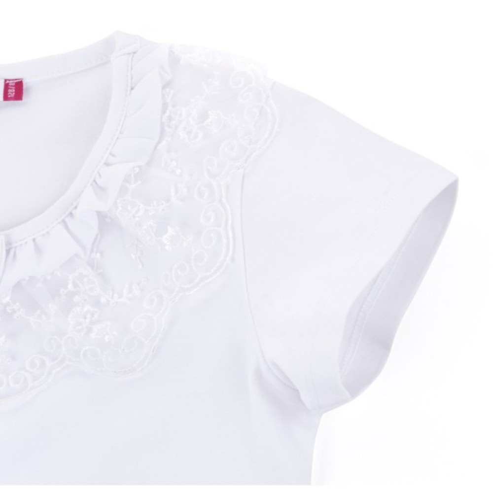 Футболка дитяча Matilda з коротким рукавом і мереживною оборкою (7134-164G-white)