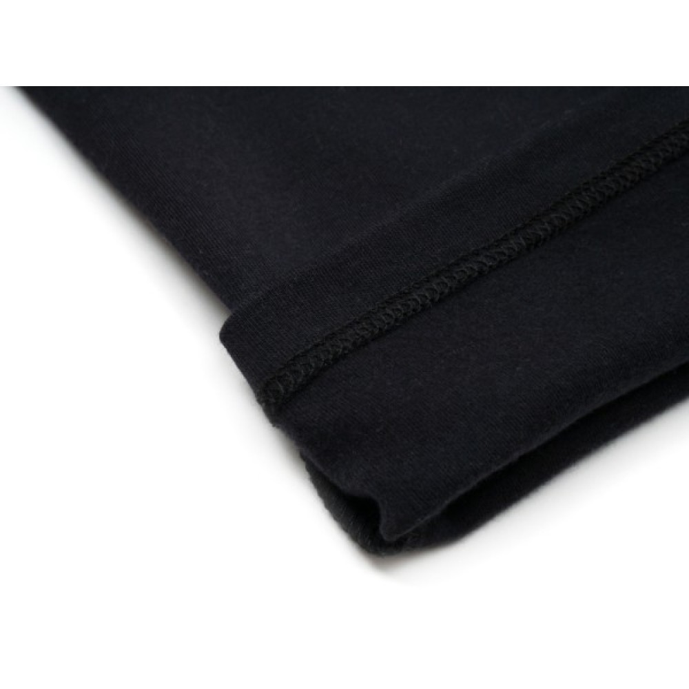 Затишна, повсякденна модель чорного кольору. Лосини пошиті із щільного трикотажу, дуже приємного на дотик. Дуже приємний бархатистий трикотаж із внутрішньої сторони. Виготовлені на основі натуральної бавовни, з додаванням невеликого % еластану для підтримки форми та підвищення зносостійкості. Щільний, еластичний пояс із подвійного трикотажу та додатково вставленою широкою гумкою, забезпечить зручність та оптимальну посадку по фігурі.