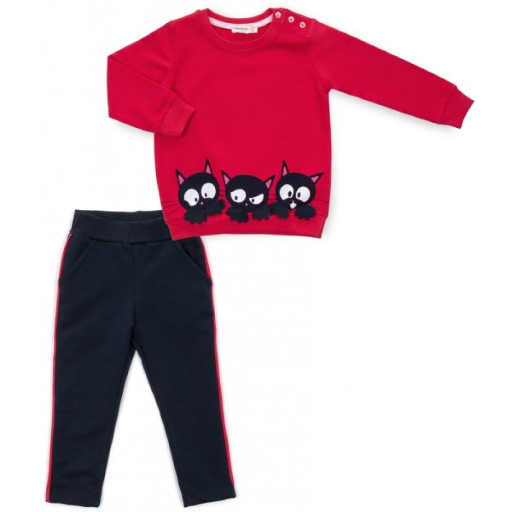 Трикотажний костюм із котиками для дівчинки.