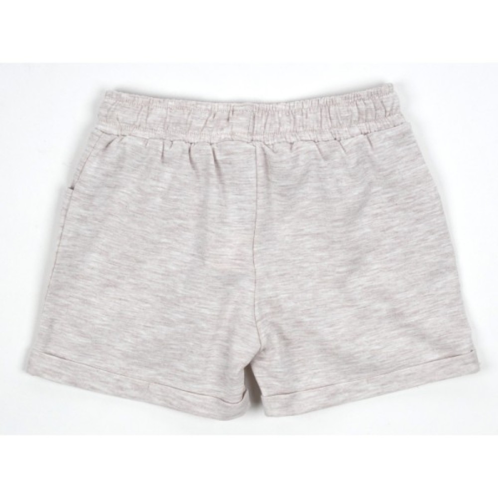 • Шортики зручні, легенькі, з двома передніми прорізними кишенями та під гумку в поясі, прикрашені з одного боку кольоровим принтовим малюнком, як на футболці. По низу також виконані фіксовані підворотики.