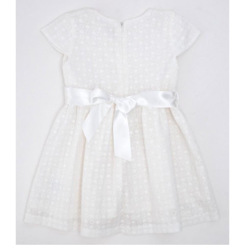 • Симпатична, дуже мила, літня ажурна сукня з короткими рукавчиками та атласним паском з бантиком – відмінний, нарядно-повсякденний варіант для вашої красуні!