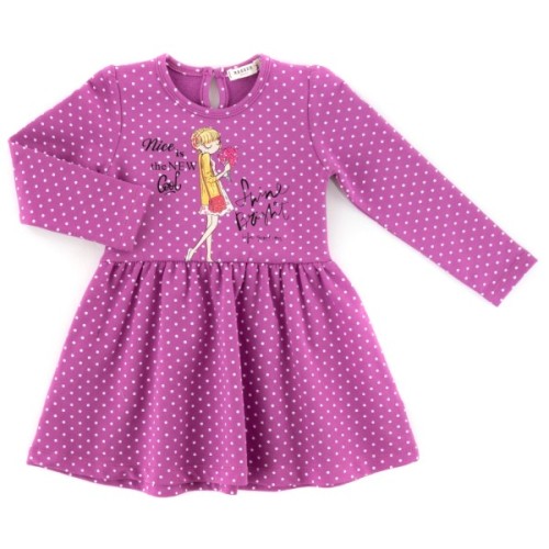 Симпатична трикотажна сукня в горошок з дівчинкою.