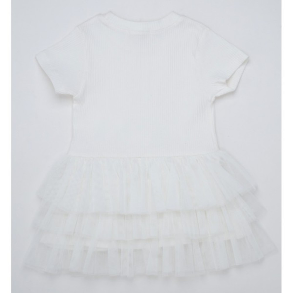 • Симпатична та дуже мила сукня молочно-білого кольору, з трохи заниженою лінією талії та ярусною фатиновою спідничкою для вашої улюбленої модниці!
