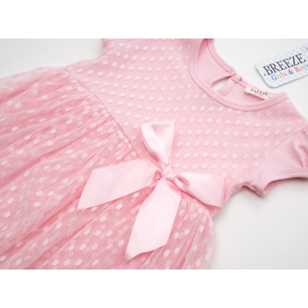 - Симпатична ніжна ажурна модель приємного, ніжно-рожевого кольору з короткими рукавами-ліхтариками для вашої красуні.