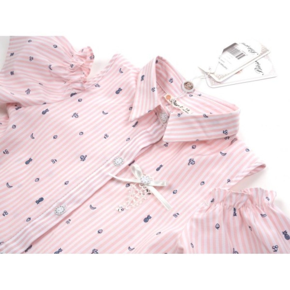 Оригінальне подовжене літнє плаття в тонку (3 мм) білу смужку для юної модниці. Зверху до низу виконана планка, яка застібається на красиві гудзики з блискучими кристалами всередині. Сукня відрізна по лінії талії. Лінія талії трохи занижена.