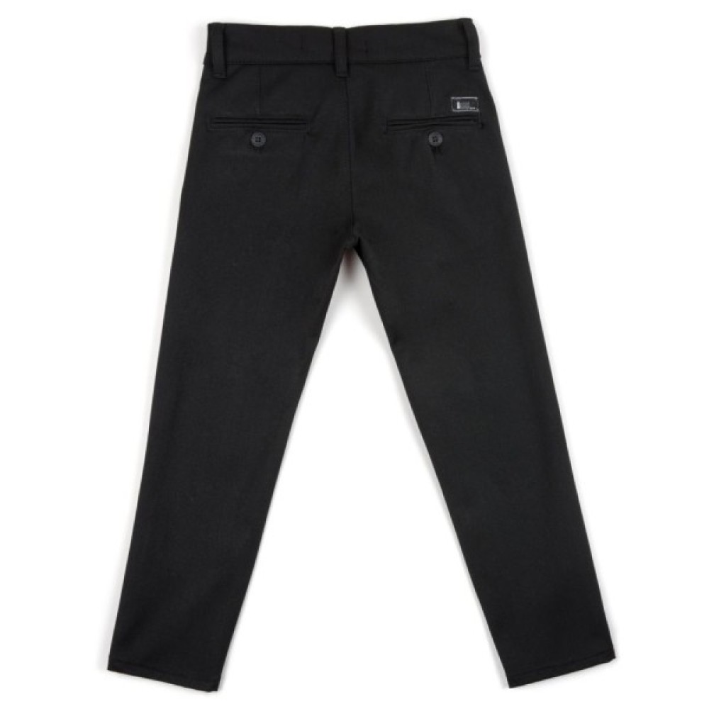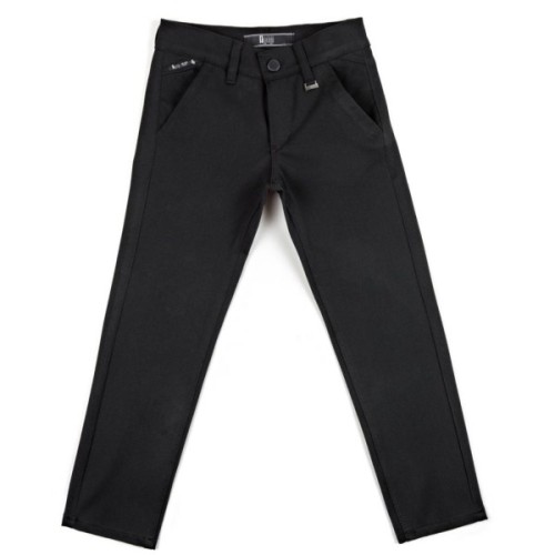 Зручна модель чорного кольору в класичному стилі і високою посадкою. Штани виготовлені з приємного на дотик матеріалу. Брючини злегка завужені до низу. Ззаду дві елегантних кишені з втачною прямокутною листочкою, спереду дві прорізні кишені і маленька потайна. Застібаються на металевий гудзик і металеву блискавку. На поясі є шлевкі для ременя, а всередині з боків вставлена гумка для регулювання обсягу талії, що забезпечить максимальну зручність та комфорт.