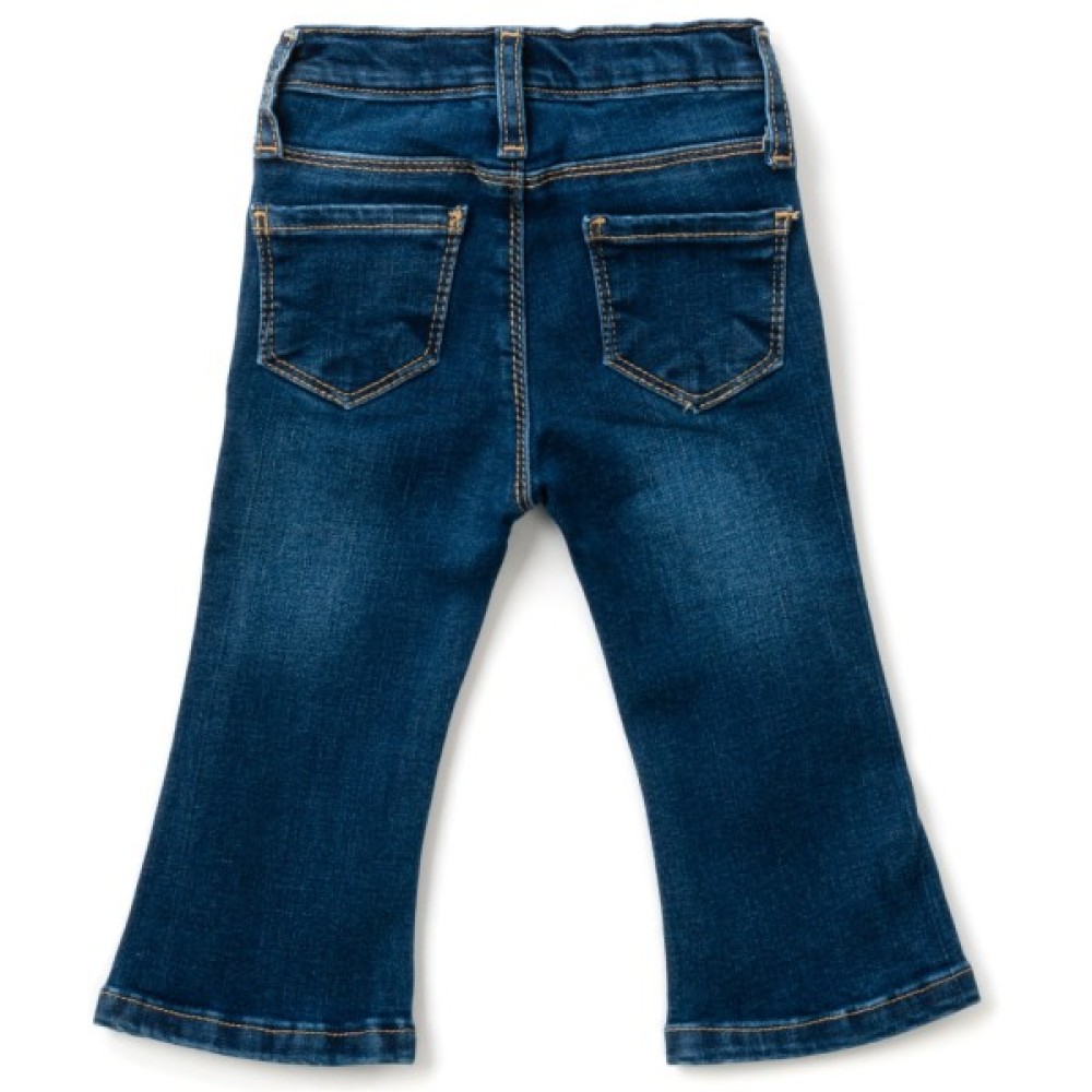 Джинси мають класичний дизайн, трохи розкльошений до низу крій і високу посадку. Для зручності дитини застібка «блискавка» відсутня, є тільки гудзик. Без проблем зможете надіти джинси на підгузок.