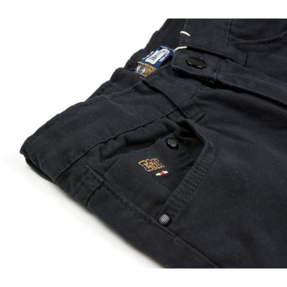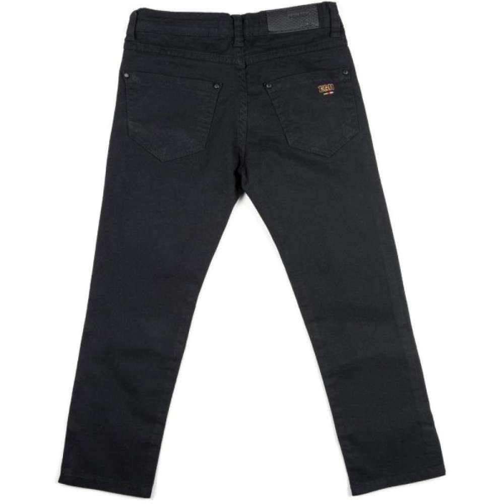 Тканина на основі бавовни, з додаванням невеликого % лайкри, для підтримки форми і збереження товарного вигляду виробу в процесі носіння. Відмінна, якісна модель зі зручною посадкою. Брючини прямі, злегка завужені до низу. Штани застібаються на металевий гудзик - кнопку і капронову блискавку. Ззаду є 2 накладних, а спереду - 2 прорізних кишені і 1 маленький внутрішній. Краї кишень посилені металевими заклепками. На поясі є шлевкі для ременя, а всередині, ззаду, вшита гумка з гудзиками для регулювання об'єму талії, що забезпечить максимальну зручність та комфорт. Прикрашені двома невеликими яскравими фірмовими логотипами «Е & Н», на задній і на маленькій внутрішніх кишенях.